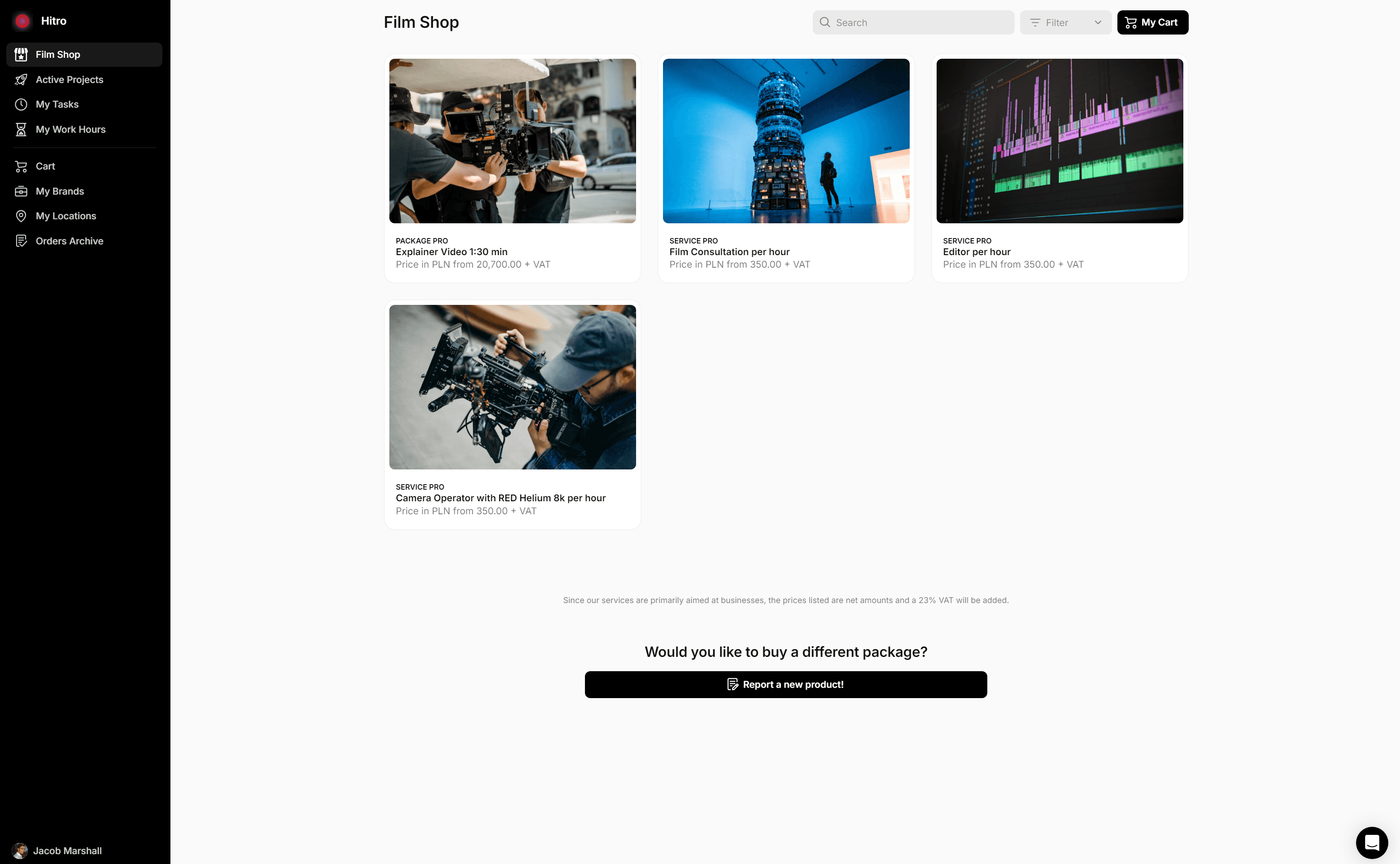HITRO posiada panel ze wszystkimi informacjami o Twoim projekcie filmowym w jednym miejscu.